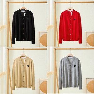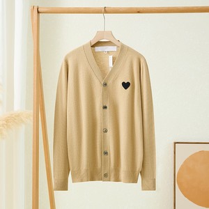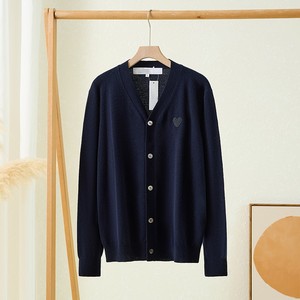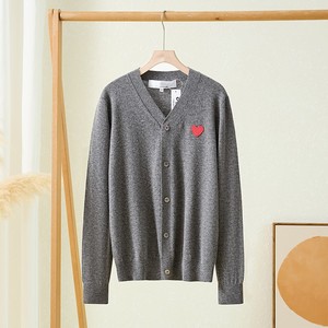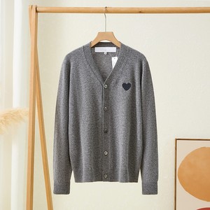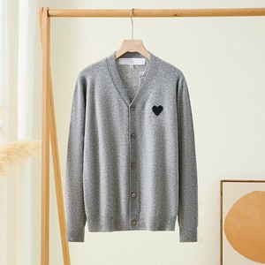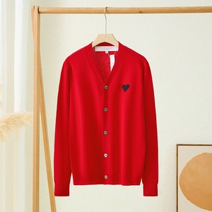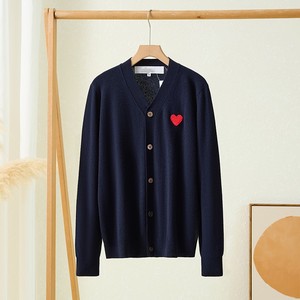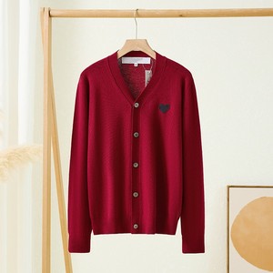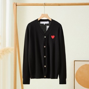 秋冬V领爱心川久100%羊毛针织外套保玲长袖play毛衣开衫男女同款
