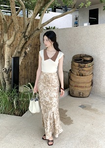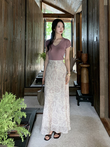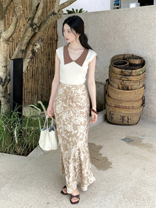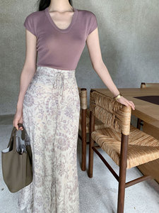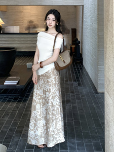 SYT原创 天丝度假印花绑带收腰长款半身裙女2025夏季新款高腰裙子