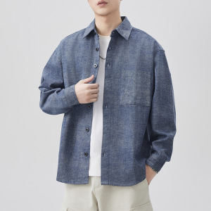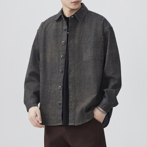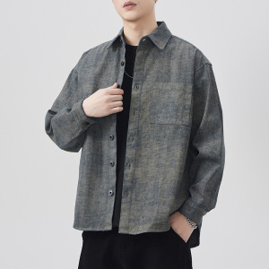 2025新款春秋款日系复古男士宽松衬衫条纹休闲美式百搭衬衣外套