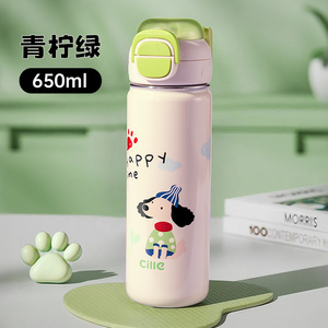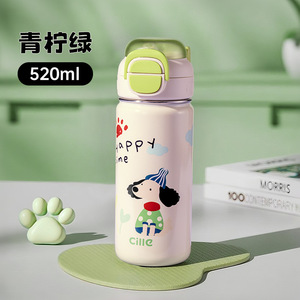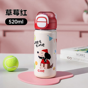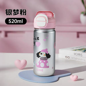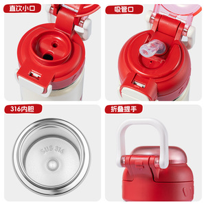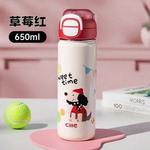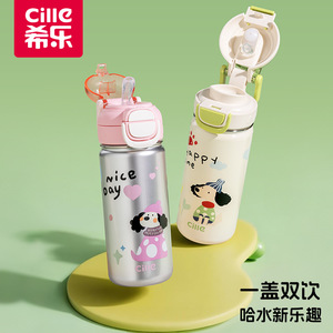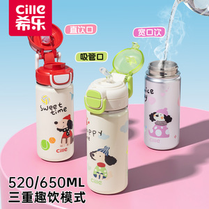 希乐保温杯女生316不锈钢杯子男儿童学生上学专用便携水壶吸管杯