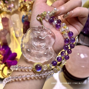 镇店~蛇狐仙君 九尾狐天然白水晶粉水晶气质小众爆款吊坠项链惜洛