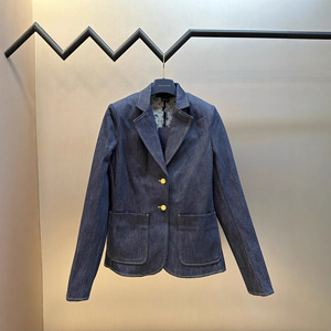 正确版本毒家驴家学院风格牛仔西装夹克平驳领大口袋款女式外套