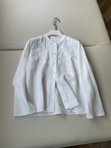 2025早春新款简约时尚百搭圆领长袖单排扣设计重工刺绣衬衣上衣批