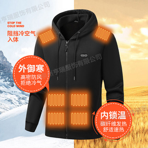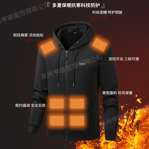 冬季新款智能开衫连帽发热卫衣男款户外恒温电加热休闲棉衣外套女