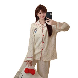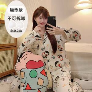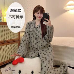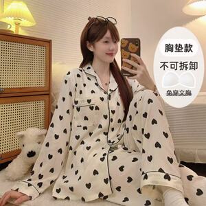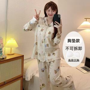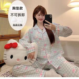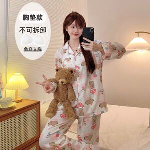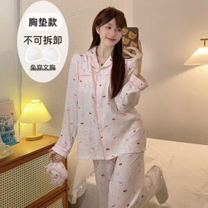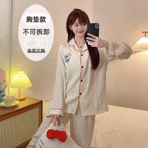 云朵棉睡衣女款春秋季带胸垫可爱卡通波点长袖套装网红家居服套装