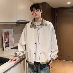 男士夹克春季美式潮流男装休闲工装衣服百搭短袖宽松复古外套男潮