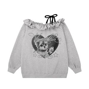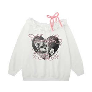 Mint Miaow 25秋季新品美式可爱露肩小狗印花套头卫衣