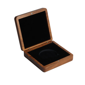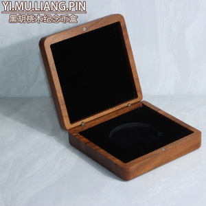 复古黑胡桃实木纪念币纪念章奖章徽章盒礼品收纳古钱币木盒十厘米