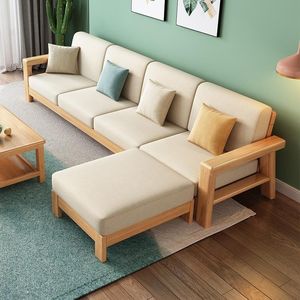 全实木沙发组合客厅现代简约沙发床两用小户型布艺轻奢复古新中式