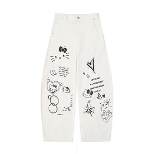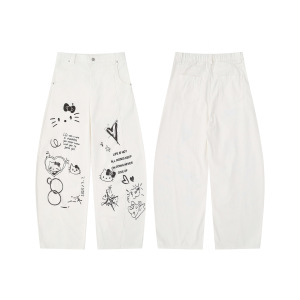 Mint Miaow 25秋季新品美式可爱趣味猫咪印花弯刀款式休闲长裤