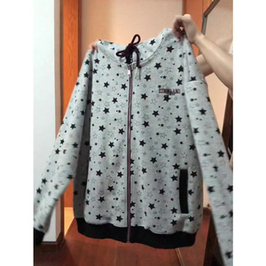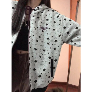 美式高级感星星满印灰色连帽卫衣女秋冬小众休闲宽松拉链开衫外套