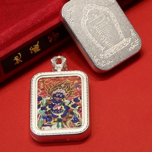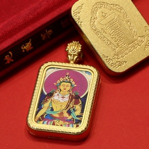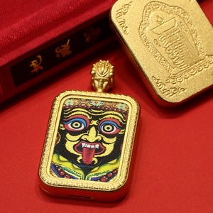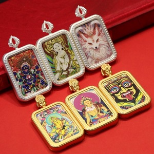 手绘描金尺寸2.5x3.5厘米小钛钢唐卡黄财神扎基拉姆吊坠厂家批发