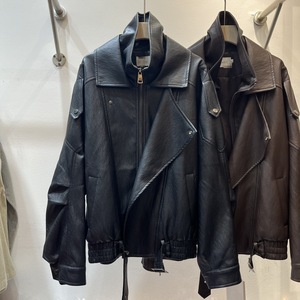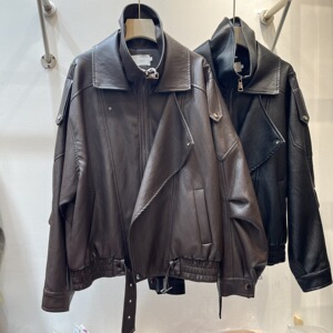 欧洲站棕色皮衣外套女秋季新款美式机车服廓形高级感夹克2025潮