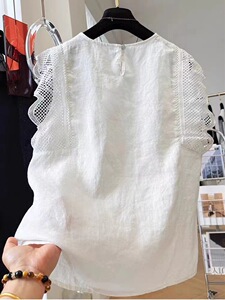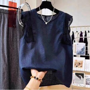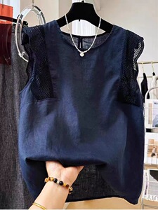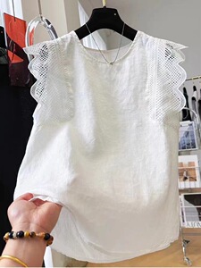 大码240斤韩系飞飞袖蕾丝花边麻料无袖纯色上衣女轻奢减龄洋气ins