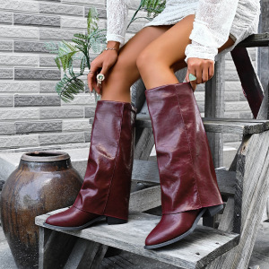 跨境2025外贸新款裤管长靴复古尖头骑士靴大码欧美时尚女士套筒靴