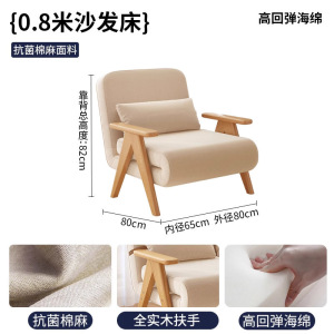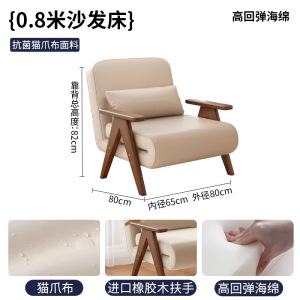 实木胡桃色沙发床客厅可折叠两用单人沙发日式多功能小户型折叠床