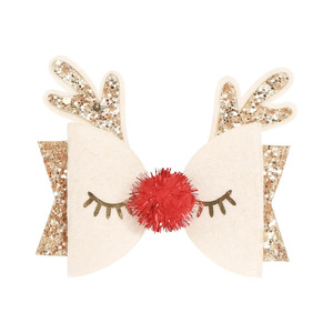 20913圣诞鹿角发夹 儿童蝴蝶结发夹 亮粉格利特圣诞节装饰边夹