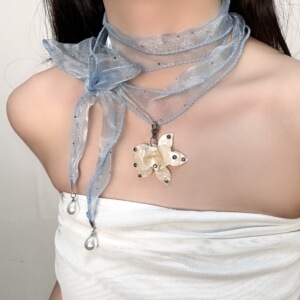 超仙波点烫钻长丝带项链腰链多戴法Choker珍珠花朵吊坠颈链锁骨链