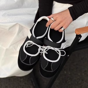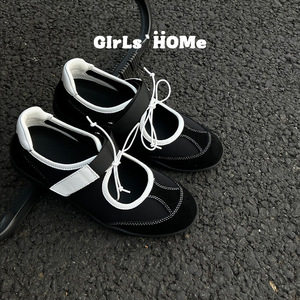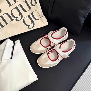 羊皮版!休闲拼色浅口玛丽珍鞋女2025夏季新款运动风厚底芭蕾舞鞋