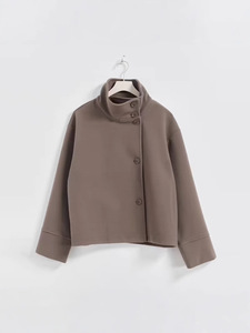 跨境欧美女装高品质新款气质优雅夹克立领单排扣宽松毛呢外套