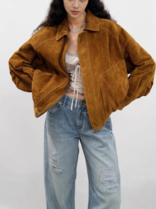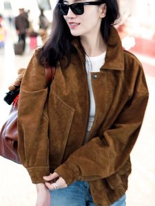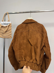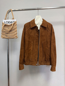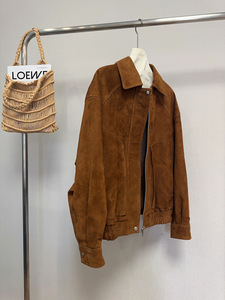 宋佳同款真皮皮衣山羊皮反绒阔版机车皮夹克老钱风2025秋新款外套