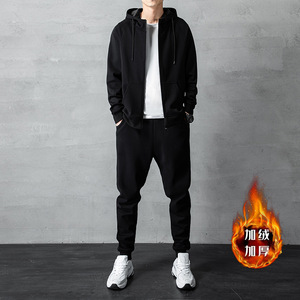 连帽卫衣套装男士秋冬季新款韩版大码加绒加厚开衫马甲搭配三件套