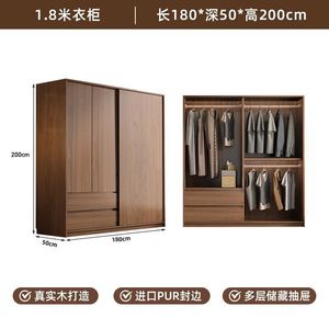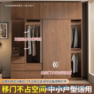 网红实木衣柜家用卧室推拉门中式储物柜子小户型新款出租房屋衣橱