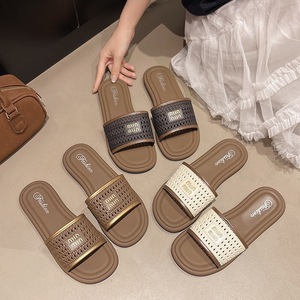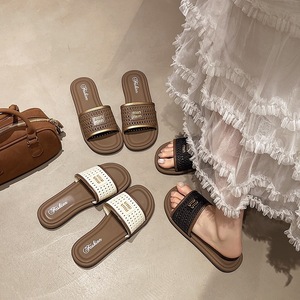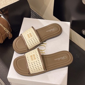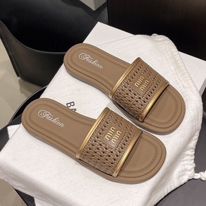 复古编织一字拖鞋女2025新款夏外穿洋气时髦平底凉拖配裙子罗马鞋