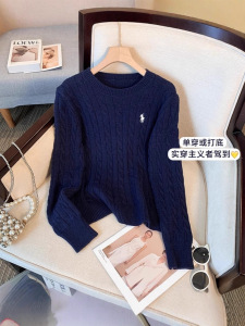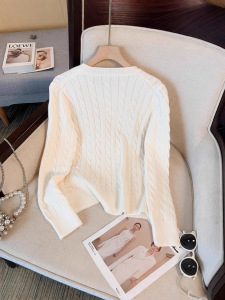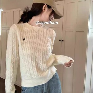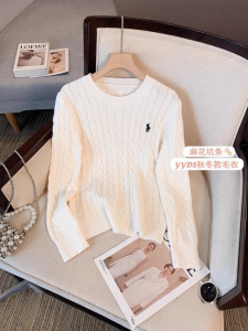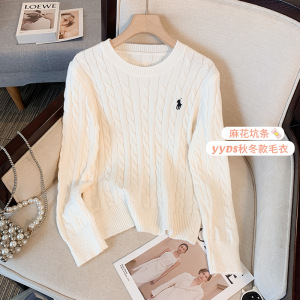 秋冬2025年新款韩系麻花圆领慵懒毛衣高级感刺绣长袖针织衫上衣女