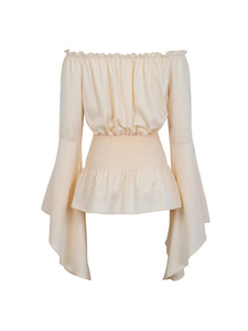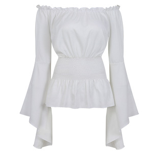欧美宫廷束腰长袖一字肩百搭中世纪女士纯色衬衫工厂批发外贸货源