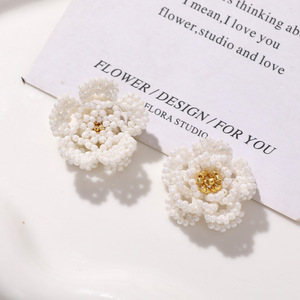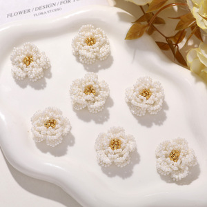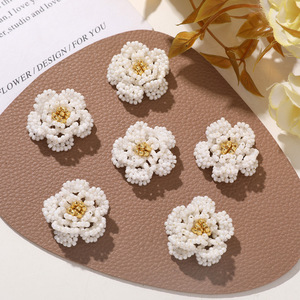 小香风奶油花朵双层米珠山茶花diy时尚气质耳环耳钉侧夹鞋花配饰