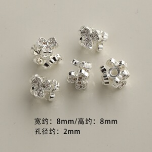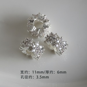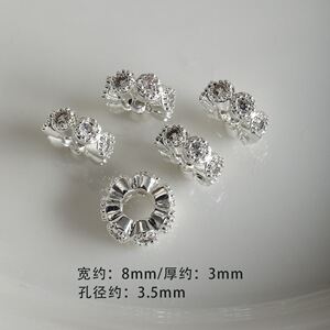 #6 铜镀厚银镶钻隔珠8mm(1颗)