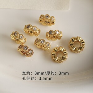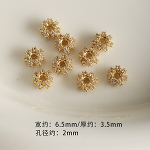 高保色铜镀真金镶钻隔片隔珠水晶手链吊坠项链散珠diy配件串珠