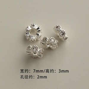 #2 铜镀厚银镶钻隔珠7mm(1颗)