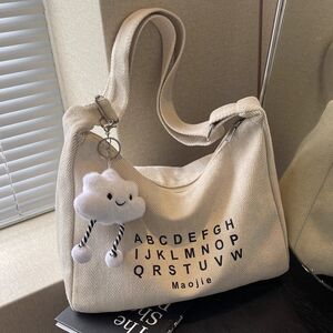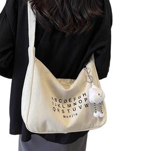 帆布包女2025新款潮秋冬简约百搭大容量单肩包休闲通勤斜挎饺子包