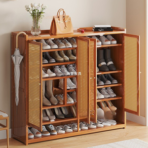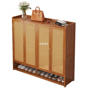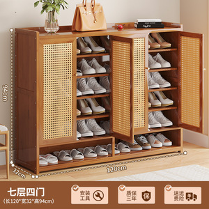 日式简约藤编防尘鞋柜收纳鞋架家用门口玄关柜小户型大容量一体柜