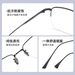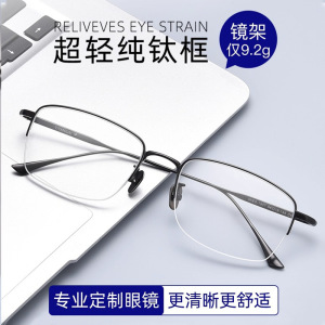 高端超轻纯钛半框眼镜男士近视可配度数防蓝光方框镜框商务眼睛架