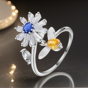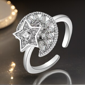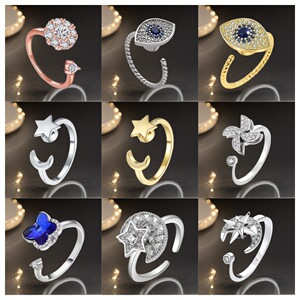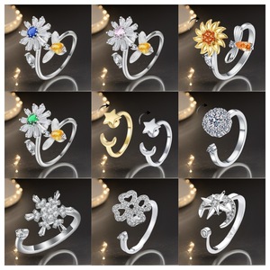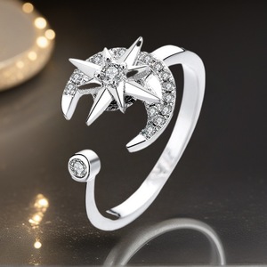 欧美跨境旋转戒指热销个性百搭调节锆石气质轻奢女满天星爆款饰品