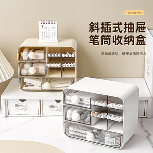 奶油风桌面收纳盒学生文具斜插笔筒化妆品书桌抽屉式多功能置物架