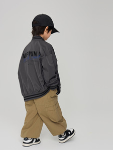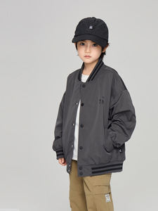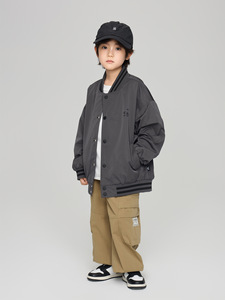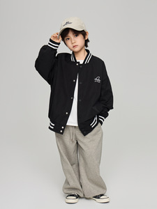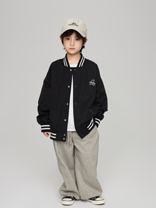 2025秋季童装新款儿童复古字母印花夹克中大童宽松外套男童棒球服