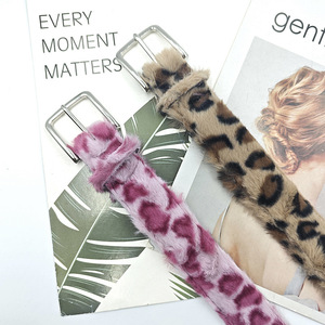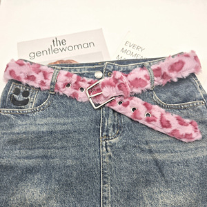 千禧涩谷辣妹复古粉红毛绒豹纹气眼造型项圈粗腰带小众设计
