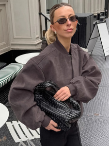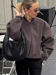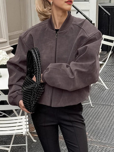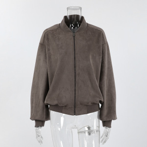 灰色外套女美拉德秋冬复古麂皮绒美式高街立领长袖飞行员拉链夹克