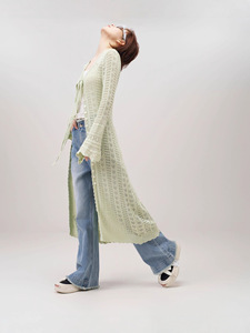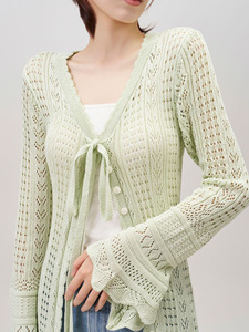 徐若晗爱你沈惜凡同款绿色针织开衫女长款外搭修身显瘦喇叭袖外套