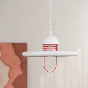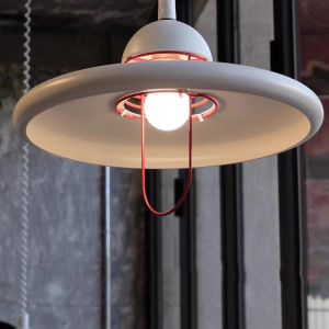 极简中古餐厅吊灯创意可伸缩吧台北欧设计师工作室岛台红色飞碟灯