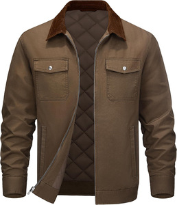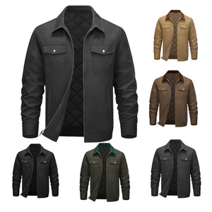 跨境男装棉衣2025冬季新品亚马逊长袖翻领宽松型男士纯棉休闲夹克