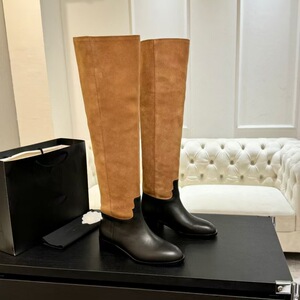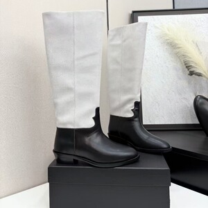 高版25秋冬新款小香风骑士靴女真皮厚底拼色字母高筒靴英伦风长靴