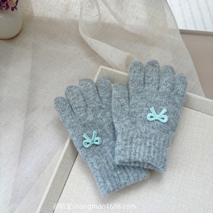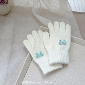 儿童手套2025新款针织蝴蝶结五指手套韩版冬季女童分指保暖手套潮