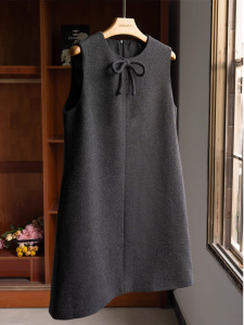 法式重磅!毒家!!~低奢老p!羊毛呢混纺蝴蝶结装饰背心裙MR187