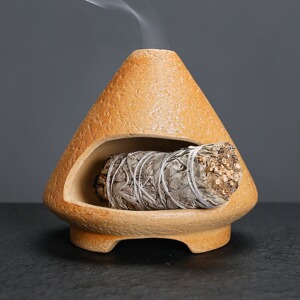 跨境陶瓷香薰炉耐明火燃烧圣木鼠尾草雪松氛围小壁炉秘鲁木燃烧炉