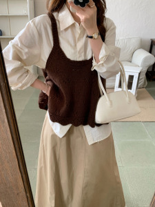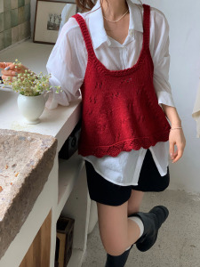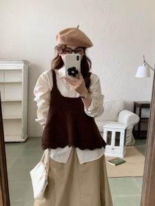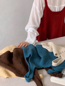 木四 学院风镂空针织叠穿吊带背心女秋季新款韩版毛衣马甲M6469